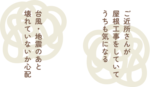 屋根に関することなら、どのような些細なことでも構いません。屋根に気になることや心配なことがございましたら、お気軽にご相談ください。